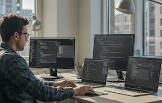 In the first module, Introduction to HTML & CSS, you'll explore the foundational principles of HTML and CSS, vital for creating web pages. You'll learn how to structure an HTML document and use CSS to stylize your web page's layout. The second module, Introduction to JavaScript Programming, dives into JavaScript, a critical language for web development. You'll gain a comprehensive insight into variables, data types, control structures, functions, and other core concepts, enabling you to create robust and dynamic web applications. Finally, in the third module, Angular for Frontend Development, you'll be guided into Angular, a popular JavaScript framework known for building scalable and dynamic web applications. You'll master essential concepts such as components, modules, directives, services, and templates, enabling you to create complex, maintainable, and scalable web applications. Throughout this course, hands-on exercises, quizzes, and assignments will enable you to actively grasp and apply the concepts learned. By the end of the course, you'll be proficient in using Angular to create frontend applications, and you'll be prepared to explore more advanced topics in subsequent courses in the specialization. Disclaimer: This course is an independent educational resource developed by Board Infinity and is not affiliated with, endorsed by, sponsored by, or officially associated with Alphabet Inc or any of its subsidiaries or affiliates. This course is not an official preparation material of Alphabet Inc. All trademarks, service marks, and company names mentioned are the property of their respective owners and are used for identification purposes only.