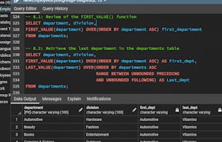 By the end of this 2-hour-long project, you will be able to use different Mathematical Functions to retrieve the desired result from a database. In this project, you will learn how to use SQL Mathematical Functions like CEIL(), FLOOR(), RANDOM(), SETSEED(), ROUND(), TRUNC(), SQRT(), CBRT(), and POWER() to manipulate data in the employees database. In this project, we will move systematically by first introducing the functions using a simple example. Then, we will write slightly complex queries using the Mathematical Functions in real-life applications. Also, for this hands-on project, we will use PostgreSQL as our preferred database management system (DBMS). Therefore, to complete this project, it is required that you have prior experience with using PostgreSQL. Similarly, this project is an intermediate SQL concept; so, a good foundation for writing SQL queries is vital to complete this project. If you are not familiar with writing queries in SQL and want to learn these concepts, start with my previous guided projects titled “Querying Databases using SQL SELECT statement," and “Performing Data Aggregation using SQL Aggregate Functions.” I taught these guided projects using PostgreSQL. So, taking these projects will give the needed requisite to complete this SQL Mathematical Functions project. However, if you are comfortable writing queries in PostgreSQL, please join me on this wonderful ride! Let’s get our hands dirty!
